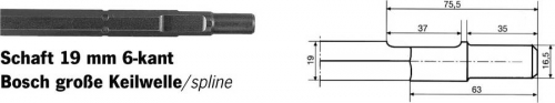 Projahn Spatmeißel Schaft 19mm 6-kant /Bosch große Keilwelle