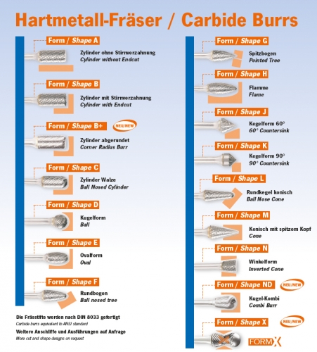 - Die in ihrer Leistungsfähigkeit optimierten Fräser sind hervorragend zur Nachbearbeitung sowie dem Anpassen von Formen und Oberflächen konstruiert.
