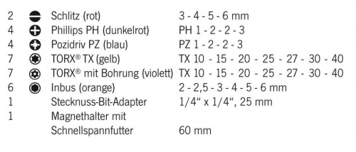Verwendung:Farbig markierte Bits erleichtern das Suchen der richtigen Größe.
