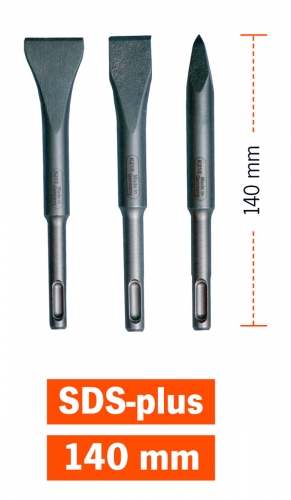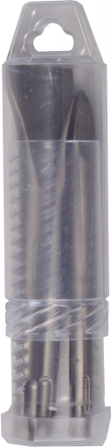 Kunststoff-Box 3-teilig mit je 1 Spitzmeißel 140mm, 1 Flachmeißel 140x20mm,