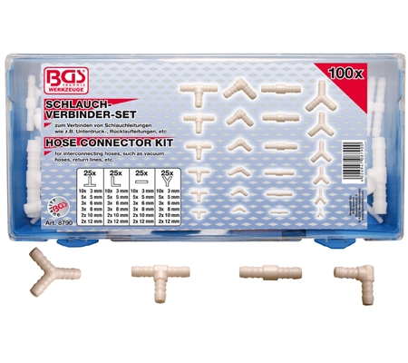 BGS Verbinder-Sortiment für Gummi- und Kunststoffschläuche, 100 tlg.