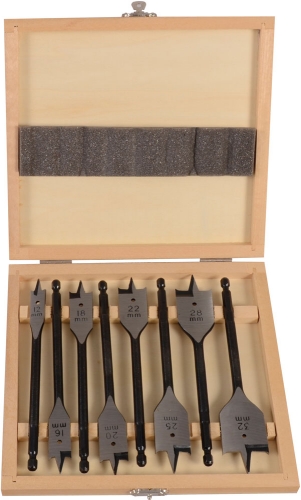 Holzkassette mit je 1 Bohrer Ø 12-16-18-20-25-25-28-32mm x160mm Länge