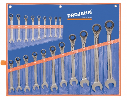 Projahn GearTech Ratschenschlüssel umschaltbar Ringseite 15°gekröpft Satz 8-teilig