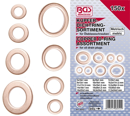 BGS Kupfer-Dichtring-Sortiment, 150-tlg.