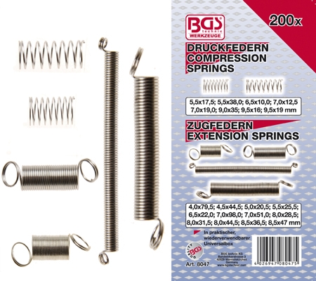 BGS Federn-Sortiment, Zug + Druckfedern, 200-tlg.