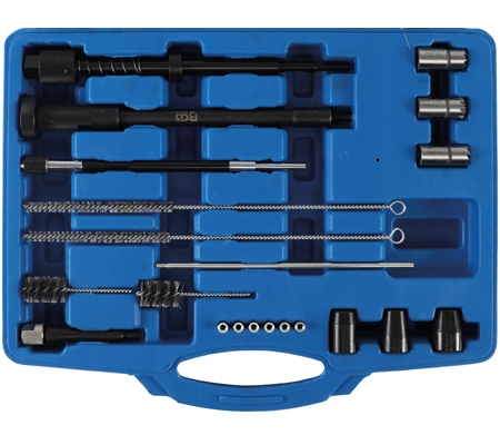 • beinhaltet: 4 Reinigungsbürsten,  Bürstenhalter, 3 Injektorsitzfräser, Fräserführung, Dichtringzieher, Bürstenhalter-Verlängerung
