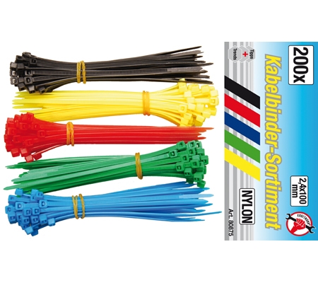 BGS Diy Kabelbinder-Sortiment, 2,4 x 100 mm, 5 Farben, 200-tlg.