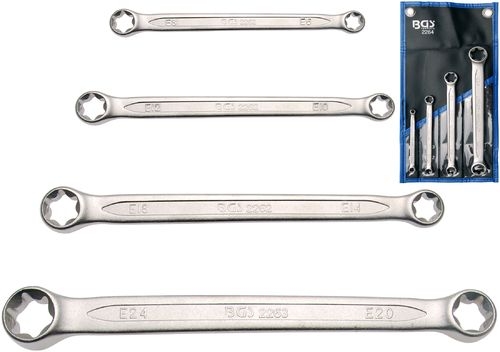BGS Doppel-Ringschlüssel-Satz mit E-Profil-Ringköpfen, SW E6xE8 - E20xE24, 4-tlg.