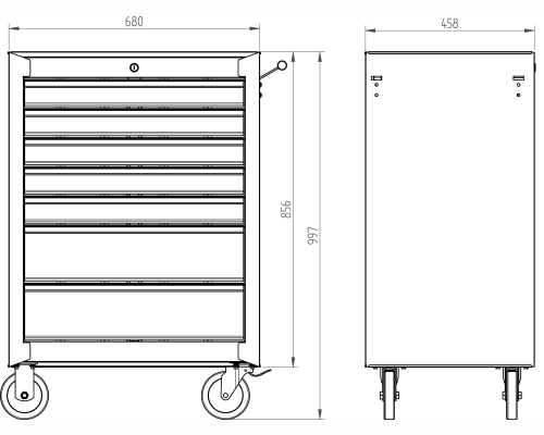 • Maße: Höhe 997 mm Breite 680 mm Tiefe 458 mm