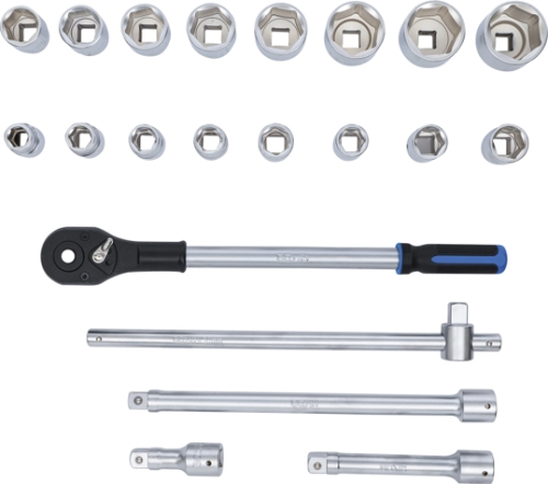 • 16 x Steckschlüssel-Einsätze Pro Torque® Sechskant, Antrieb Innenvierkant 20 mm (3/4"): SW 19 - 21 - 22 - 23 - 24 - 26 - 27 - 30 - 32 - 34 - 36 - 38 - 41 - 46 - 48 - 50 mm