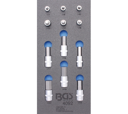 BGS Werkstattwageneinlage: Bit-Einsatz-Set Innen-6-kant, 12,5 (1/2), 12-tlg.