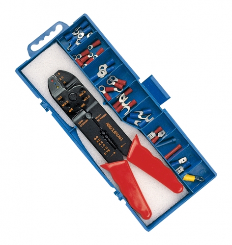 • Klemmzange und 34 Klemmen für isolierte Drähte