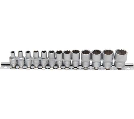 • Steckschlüssel-Einsätze Zwölfkant, Antrieb Innenvierkant 6,3 mm (1/4"): SW 4 - 4,5 - 5 - 5,5 - 6 - 7 - 8 - 9 - 10 - 11 - 12 - 13 - 14 mm