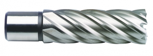 PROJAHN Kernbohrer in HSS-Stahl Qualität werden mit einer Schnitttiefe von 30 und 55 mm gefertigt. Der Kernbohrer wird in Vollschliff-Technologie produziert, dadurch erhält er ein perfektes Oberflächenfinish mit optimalem Spänefluss. Die PROJAHN Kernbohrer werden auf mobilen Magnet-Kernbohrmaschinen oder auch auf stationären Säulenbohrmaschinen eingesetzt. Hohe Kosten- und Zeitersparnis, weil der Kernbohrer nur einen Ring und nicht den ganzen Bohrdurchmesser ausbohrt. Die Zeitersparnis kann bis Faktor 10 betragen, auch weil aufwendige Vorarbeiten wie z.B. das Vorzentrieren und Vor- und Aufbohren entfallen. Durch die geringe Materialbeanspruchung ergibt sich eine höhere Standzeit der Kernbohrer im Vergleich zu Vollbohrer. Der Führungsstft ist federnd gelagert und wirft den Bohrkern aus. Immer Kühlmittel und optimale Drehzahl verwenden.