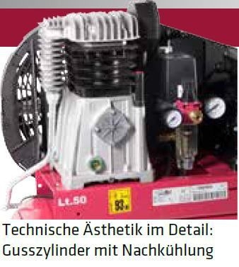 Diese kraftvollen Geräte mit Wechsel- oder Drehstrommotor, Keilriemenantrieb, Gusszylinder, Präzisions-Hochleistungskolben, großem Lüfterad und Nachkühlung aus Aluminium-Druckguss (nur EUROAIR 400 und 410) liefern auch für längere Powereinsätze ausreichend Druckluft. Auch für kleinere Lackierarbeiten sind stets ausreichend Druckluftreserven vorhanden.