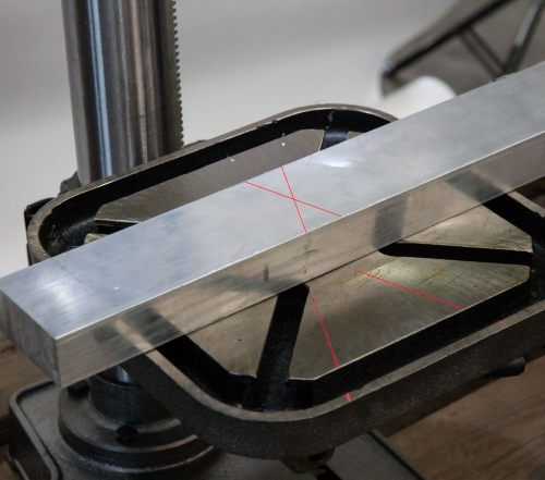 2. Ankörnen: Bohrstelle durch Anreißen mit einer Reißnadel markieren. Einen gehärteten Körnerstift ansetzen und Bohrstelle mit einem kurzen Hammerschlag ankörnen - so kann der Bohrer nicht abrutschen. Bei HSS-Bohrern mit Kreuzanschliff kann das Ankörnen entfallen. Bei großen Bohrdurchmessern mit kleinerem Bohrer vorbohren.