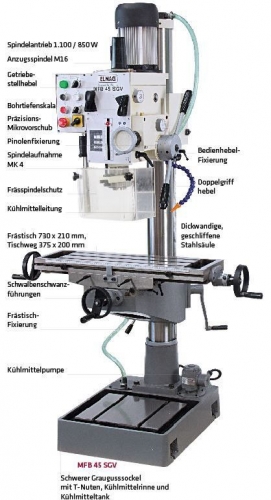 • Die MFB 45 SGV kann alles: Plan- und Schaftfräsen, Bohren, Senken,