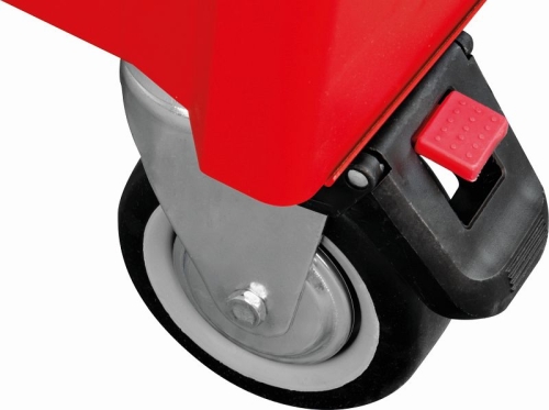 • Maximale Standsicherheit durch 2 Räder mit Rollen- und Drehbremse
