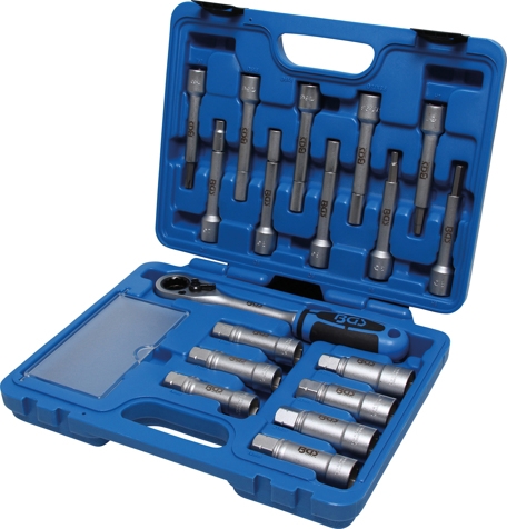 1 x Steckschlüssel-Einsatz Sechskant, tief, Antrieb Innenvierkant 12,5 mm (1/2"), Länge 122 mm, SW 9 mm, für Opel Corsa B, Astra F/G, Vectra B
