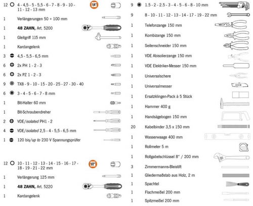 • 1x 1/4" Umschaltknarre, 48 Zahn