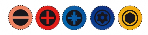 • Farbig markierte Bits erleichtern das Suchen der richtigen Größe