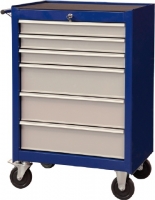Der Werkstattwagen ist ausgestattet mit 6 leichtgängigen und kugelgelagerten Schubfächern (3 x 75 mm, 3 x 154 mm Höhe).
