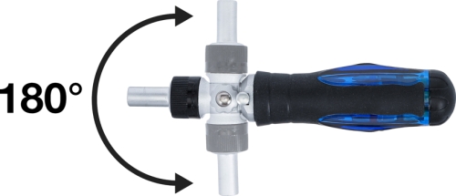 • 180° Grad Schwenkmechanismus der Ratsche ermöglicht das Arbeiten an schwer zugänglichen Verbindungselementen
