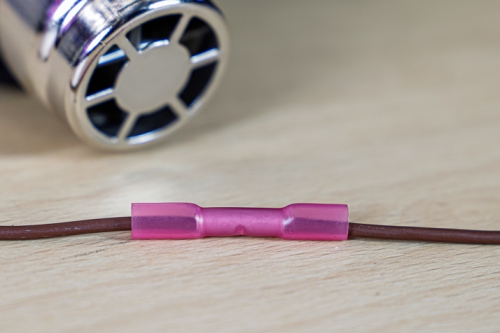 • durch Erwärmen mit einem Heißluftgerät verbindet das Lötzinn im Innern dieser Isolierverbinder die Kabelenden