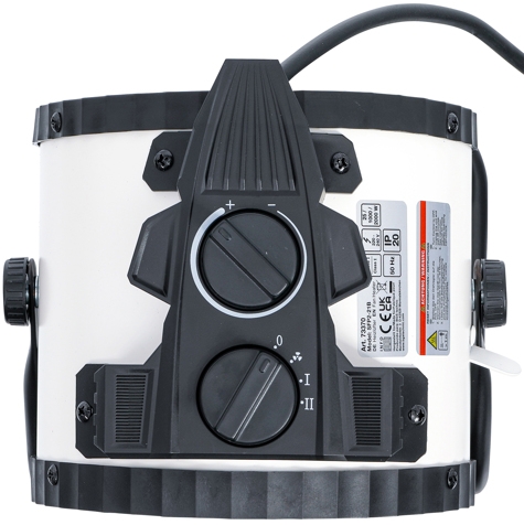 • ein keramisches Heizelement und der kraftvolle Luftstrom sorgen für eine schnelle Erwärmung über große Entfernungen bei geringem Geräuschpegel