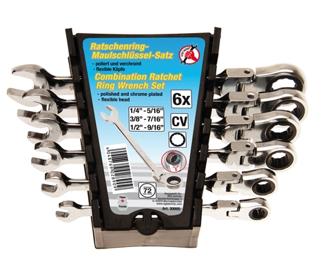 BGS Diy Maul-Ratschenring-Schlüssel-Satz, ZOLL, flexible Köpfe 6-tlg.