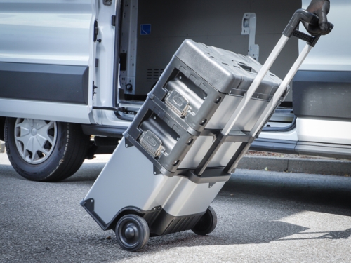 • stabiler Hartschalenkoffer aus schlagfestem Kunststoff und Stahlblech