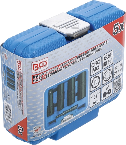 BGS 1/2 Kraft-Spezial-Steckschlüssel-Wendeeinssatz-Satz Sechskant & Schraubendreher 17-19-21mm 3-tlg.