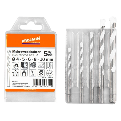 Inhalt: je 1 x Mehrzweckbohrer Ø 4 mm, 5 mm, 6 mm, 8 mm, 10 mm