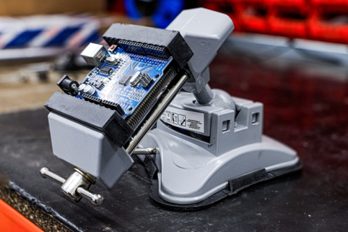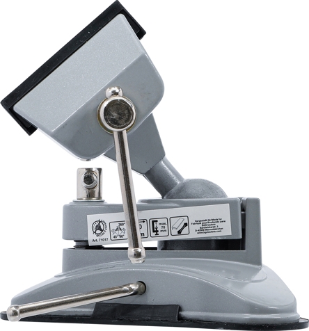 • durch das Kugelgelenk lässt sich der Schraubstock um 360° in der Waagerechten und um 180° in der Senkrechten stufenlos verstellen