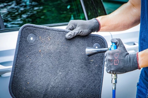 • zur trockenen Reinigung von verschmutzten Oberflächen wie Polster, Radkästen und Fußmatten