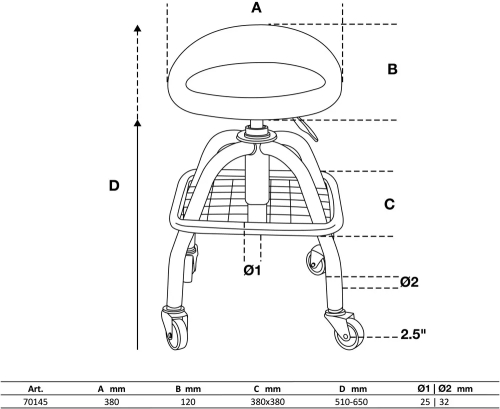 BGS Werkstattstuhl mit 4 Rollen höhenverstellbar 540-680mm