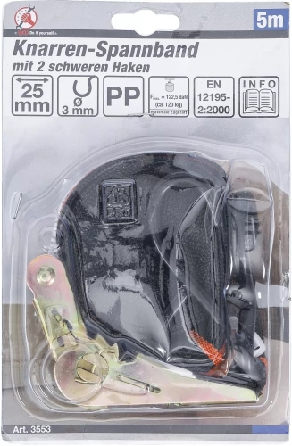 BGS Diy Knarren-Spannband mit 2 schweren Haken 5mx24mm