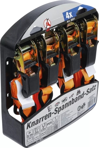 BGS Diy Knarren-Spannband-Satz mit schweren Haken 5mx25mm 4-tlg.