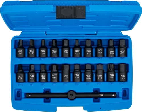 • 9 x Sechskanteinsätze 8 - 9 - 10 - 12 - 14 - 17mm, 8mm (5/16") - 10mm (3/8") - 12,5mm (1/2")