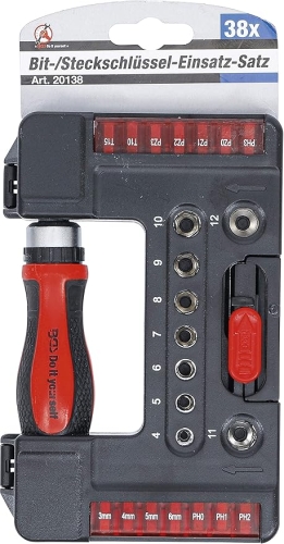 BGS Diy Bit-/Steckschlüssel-Einsatz-Satz mit Ratschen-Drehgriff für Bits, umschaltbar 38-tlg.