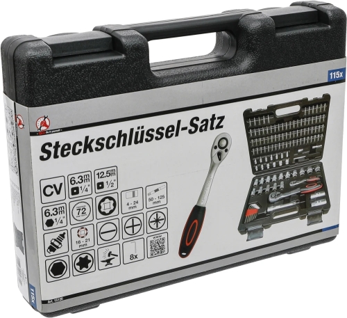 BGS Diy 1/4 & 1/2 Steckschlüssel-Satz Wellenprofil 115-tlg.