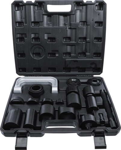 das Set beinhaltet alle benötigten Hülsen und Druckstücke zum Wechseln der Kugelgelenke an den meisten US-Fahrzeugen wie z. B. GM, Ford und Dodge 2WD und 4WD Pickup bis 1997