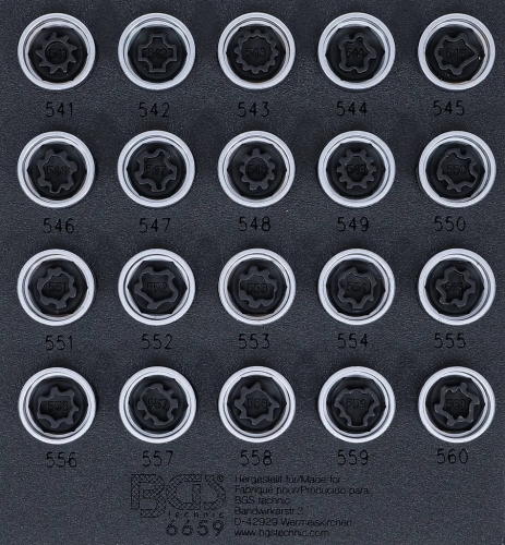 • 20 Felgenschlosseinsätze in den Größen: