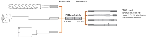 • Der PROConnect-Adapter schafft mit seinen beiden SDS-max-Aufnahmen eine sichere und schnelle Verbindung zwischen Werkzeug und Verlängerungsschaft.