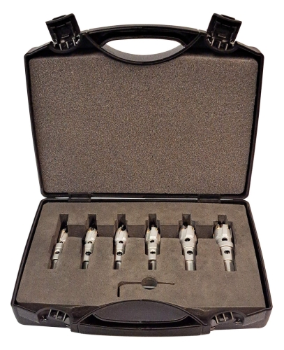 Inklusive 6 Zentrierbohrern mit Stufenspitze, 4 Auswurffedern und 2 Winkelstiftschlüsseln