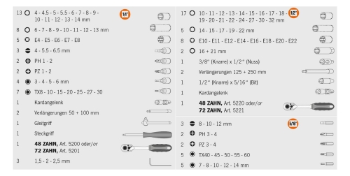 17 Steckschlüssel-Einsätze 12,5 [1/2"] 10 - 32 mm